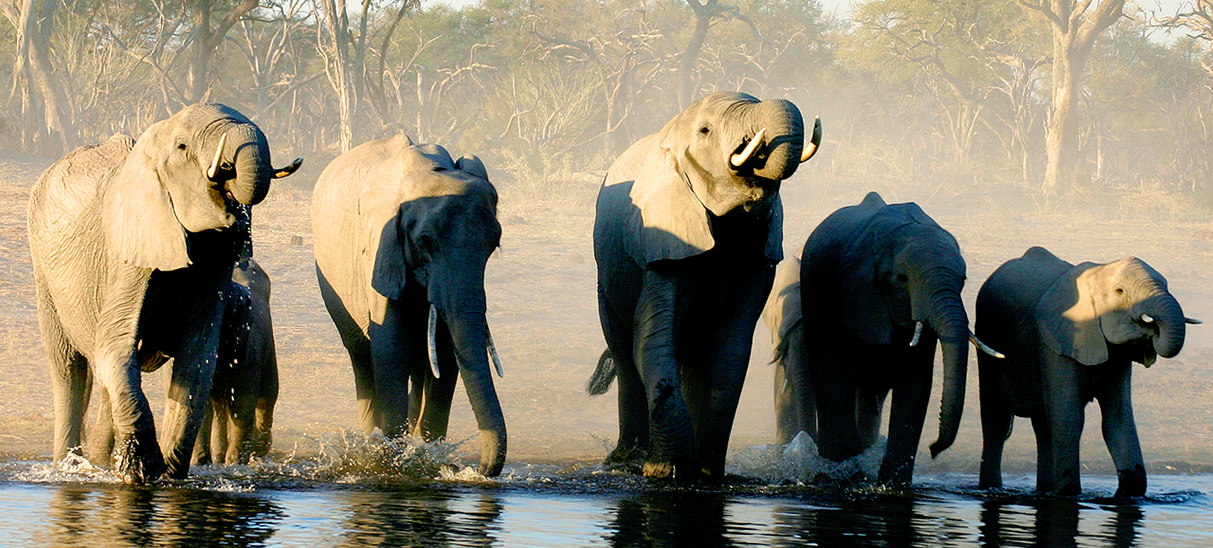 9. Tag: Der Tierreichtum in den grünen Regionen des Chobe Nationalpark ist unglaublich. Riesige Herden treffen sich am Fluss und auch alles Großwild und Raubwild ist vertreten. Vormittags Pirschfahrt und nachmittags Bootsfahrt auf dem Chobe-Fluss. Chobe Elephant Camp. (F/M/A)
