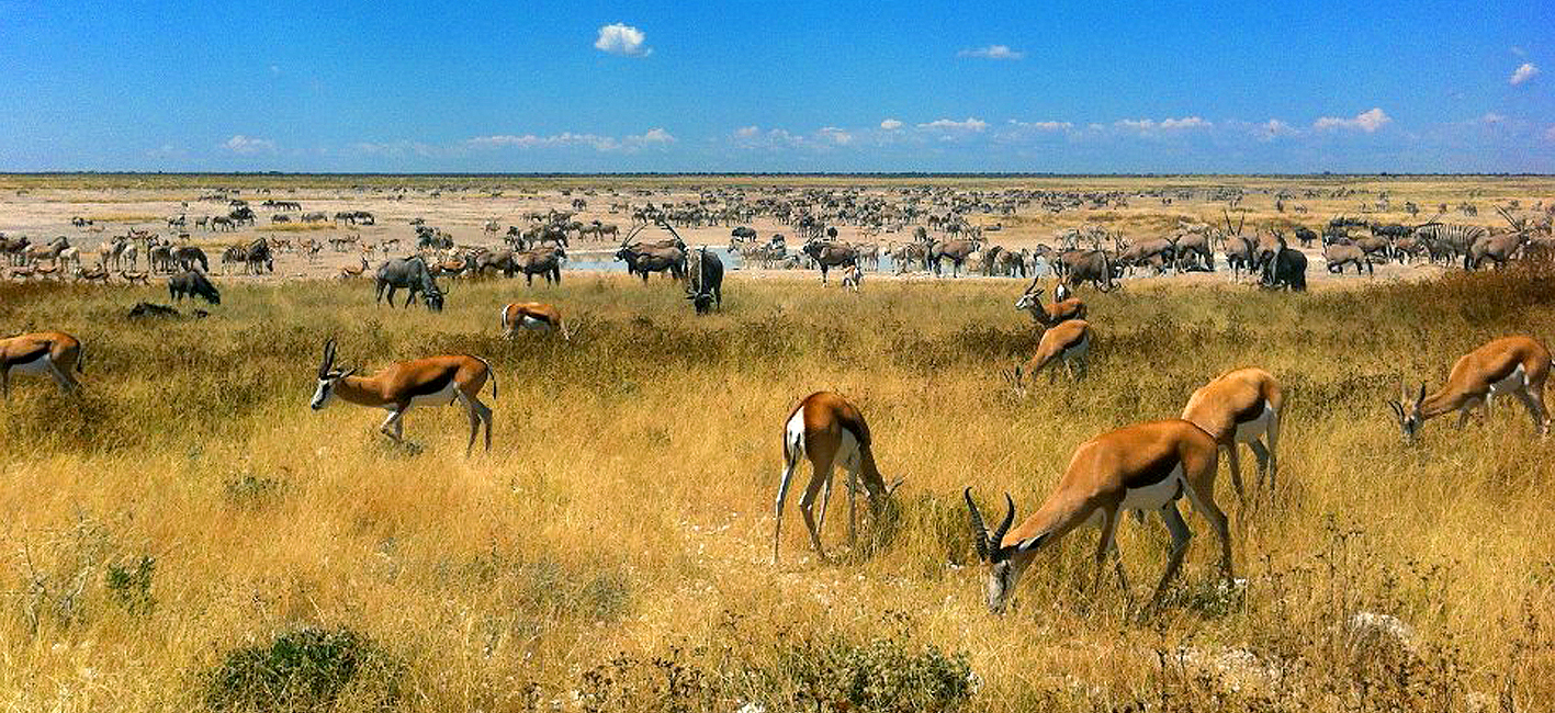 Tag 4: Auf dem Weg nach Norden besuchen wir eine Krokodilfarm in Otjiwarongo und ein Gepardenprojekt. Im Laufe des Nachmittags treffen wir im Etoscha Nationalpark ein. Für die nächstenbeiden Nächte schlagen wir unsere Zelte im Camp Okaukuejo auf (Campingplatz mit großem Schwimmbad). Am Nachmittag starten wir zu unserer ersten Pirschfahrt durch den Nationalpark. Angrenzend zum Camp gibt es eine beleuchtete Wasserstelle, an der sich die Tiere auch am Abend gutbeobachten lassen. (S.v.) F/A (360 km)