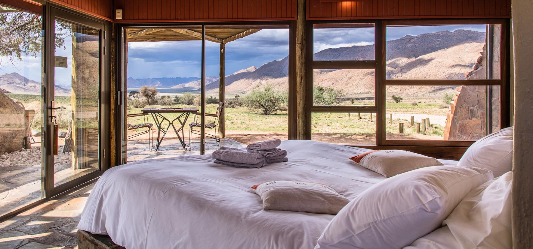 Tag 4: Nach einem gemütlichen Frühstück fahren wir entlang der Naukluftberge. Die beeindruckende Landschaft der Naukluft ist ein Schmaus für jeden Naturfreund. Wind und Sonne, Hitze und Kälte, Trockenheit und Regen haben hier eine fantastische Felslandschaft geschaffen, in der Kudus, Bergzebras, Klippspringer, Paviane und Leoparden vorkommen. Hier können wir eine ca. einstündige Wanderung zu den einmalig schönen Pools am Waterklooftrail unternehmen. Schon bald haben wir unsere nette Wüstenunterkunft erreicht, welche uns für die nächsten beiden Nächte beherbergen wird. F/M (LTC) (220 km)