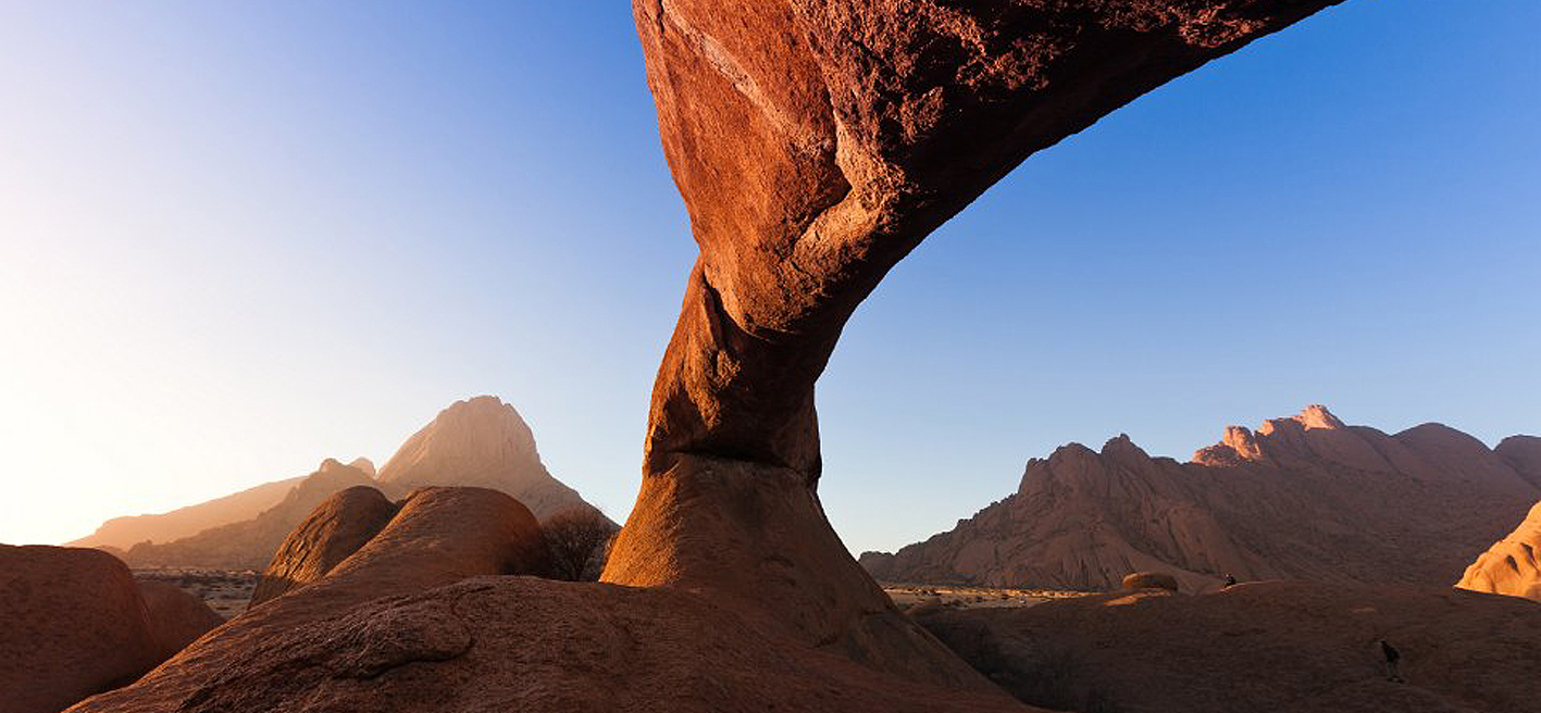 Tag 8: Im Laufe des Vormittages erreichen wir die Spitzkoppe, auch das „Matterhorn Namibias“ genannt. Eine einstündige Wanderung führt uns zu einem bezaubernden Hochtal, dem „Buschmann Paradies“, einem Felsüberhang mit unzähligen Felszeichnungen. Wir fahren anschließend zum Brandberg und übernachten in urigen Hauszelten mit ensuite Bad in schöner Lage. Hier können Sie einen tollen Spaziergang unternehmen und auf einer Pirschfahrt bestehen gute Chancen, die seltenen Wüstenelefanten anzutreffen. F/M/A (LTC) (280 km)