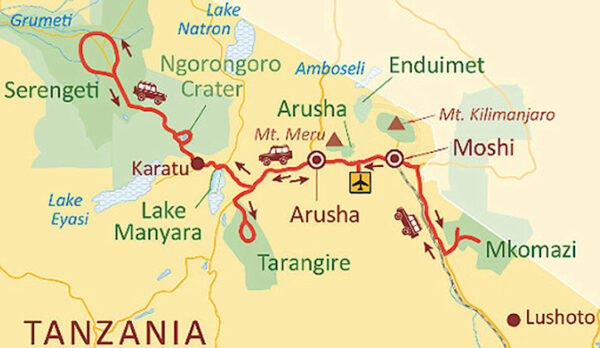Wir beschränken uns bei diesem einzigartigen Safariangebot weitgehend auf die wichtigsten und eindrucksvollsten Nationalparkgebiete. So verbringen Sie jeweils 3 Nächte in der weltberühmten Serengeti, dem eindrucksvollen Tarangire Nationalpark, aber auch in dem noch weitgehend „unbekannten“ Mkomazi Nationalpark mit seinen „Big 5“ und großen Beständen an Nashörnern. Dies verspricht extrem intensive Nationalparkerlebnisse und neben spektakulären Tierbeobachtungen auch mehr Ruhe und Entspannung. Eine ausgiebige Pirschfahrt im „paradiesischen“ Ngorongoro Krater rundet dieses traumhafte Angebot ab.