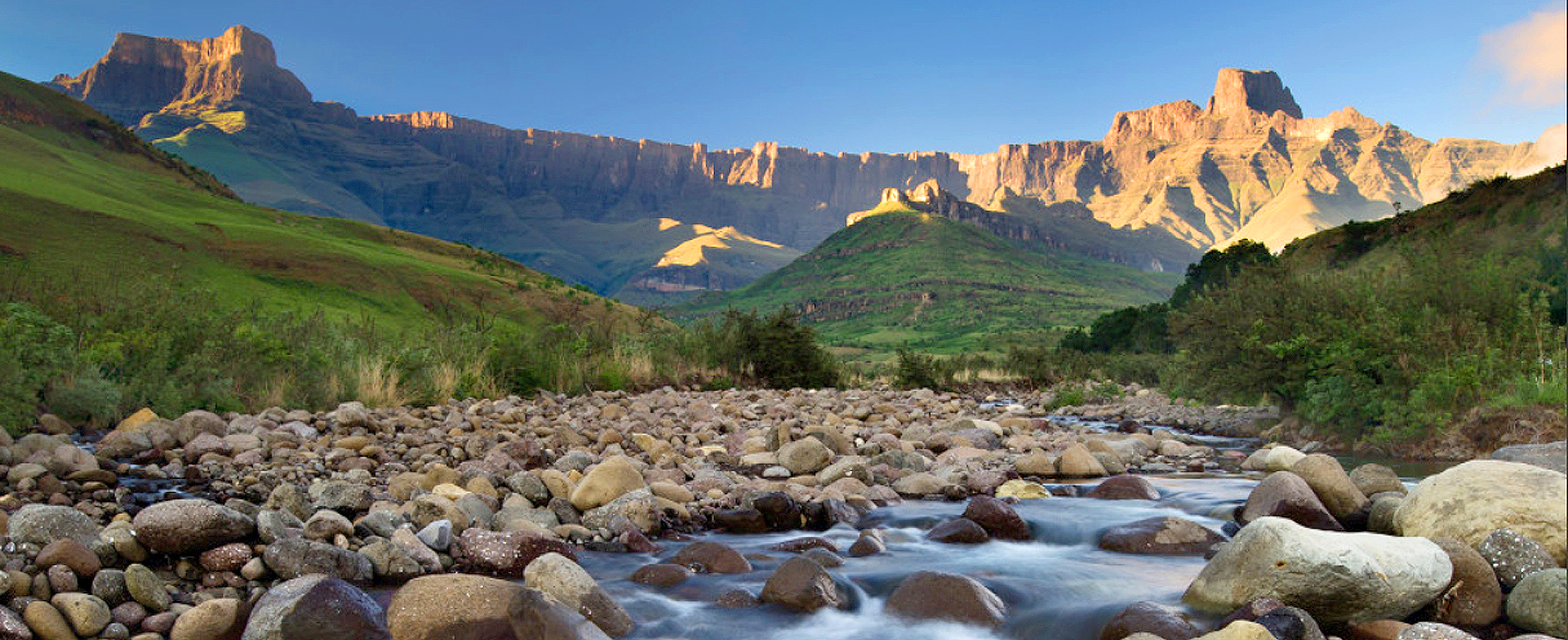Grüne Berghänge, die in größeren Höhen in Feldplateaus übergehen, sind charakteristisch für die Drakensberge. Sie liegen in der Grenzregion von Südafrika zum Bergkönigreich Lesotho. Mit 3.482 Metern Höhe ist derThabanaNtlenyana der höchste Gipfel im südlichen Afrika. Immer wieder treffen Sie hier auf eindrucksvolle Formationen, wie z.B. den Blyde River Canyon oder die ThreeRondavels, drei Felsen, die wie Rundhütten aussehen. Viele Felsmalereien erinnern an die früheren Bewohner dieser Region – den San (Buschleute). In den Höhenlagen der Drakensberge liegt das unabhängige Königreich Lesotho. 80 Prozent des Landes liegen oberhalb von 1.800 Metern. Die etwa zwei Millionen Bewohner des Landes leben überwiegend in traditionellen Bergdörfern.