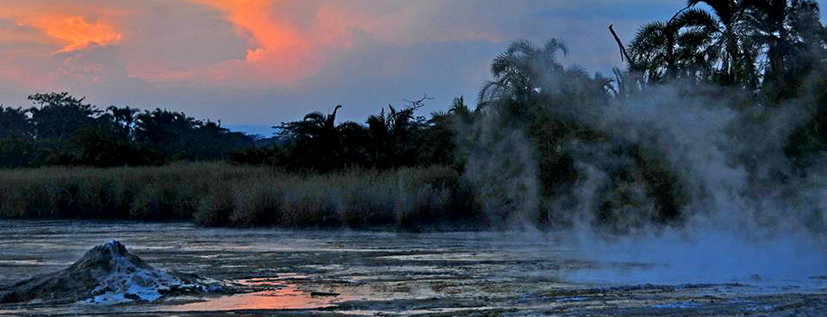 7. Tag: Wanderung im Semliki Nationalpark. Urwaldriesen, viele Primaten und heiße Quellen gibt es zu entdecken.
