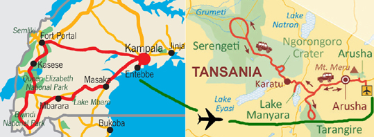 Wir kombinieren hier unsere Kompakt-Safari Uganda und die Kompakt-Safari Tansania zu einem Safarierlebnis der Extraklasse.